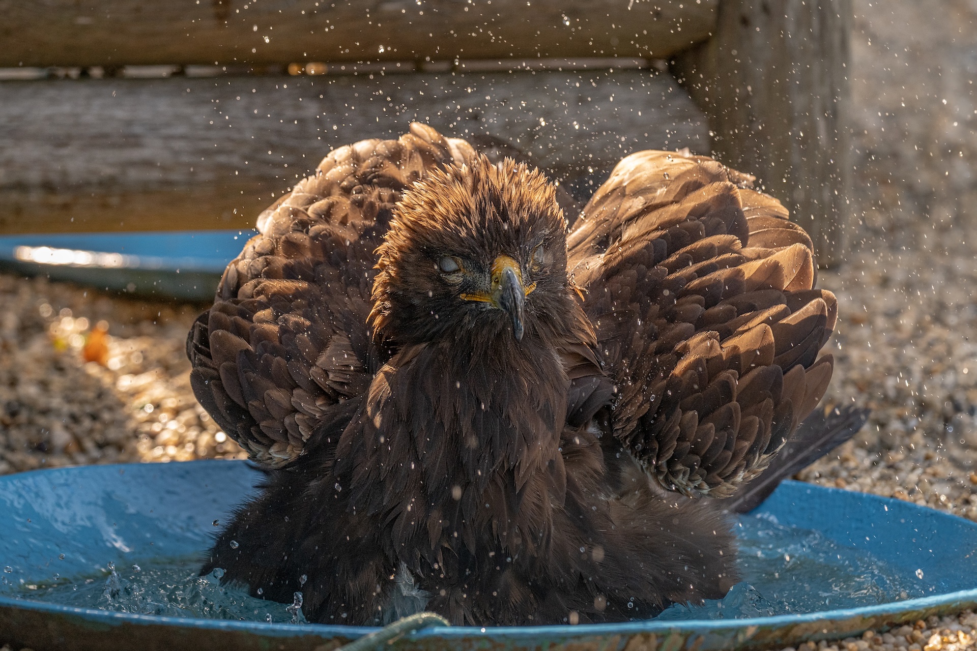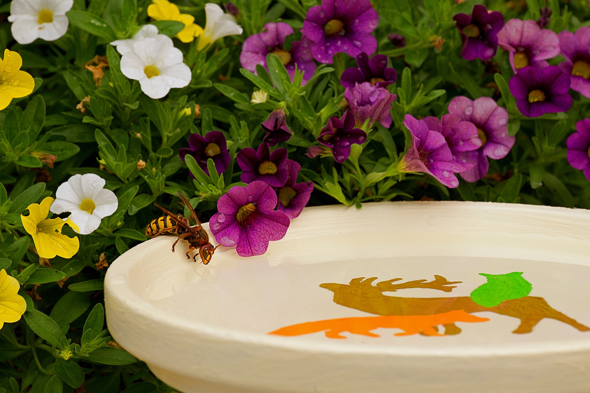 Die regelmäßige, gründliche, tägliche Reinigung der Tränken/Badestellen ist sehr wichtig! Sonst besteht eine erhebliche Gefahr, dass sich Krankheitserreger im Wasser rasch vermehren können und aufgrund der frequenten Nutzung verschiedener Individuen, eine schnelle Ausbreitung von Krankheiten unter den verschiedenen Wildtieren die Folge ist.